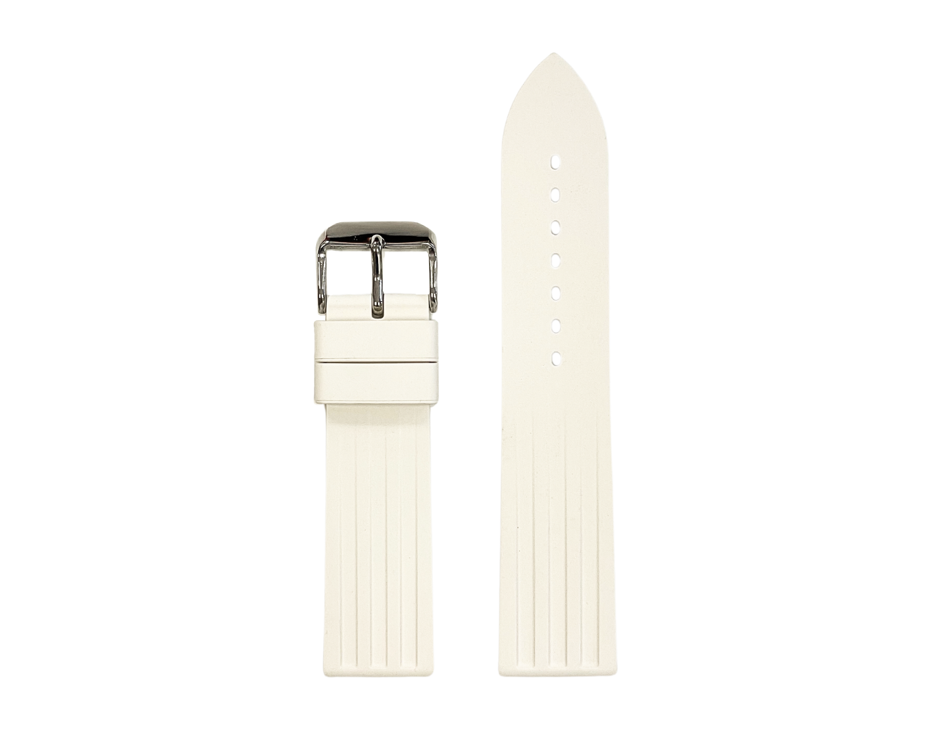 Dieses robuste, in elegantem Weiß erhältliche Kautschukarmband hat bei normaler Benutzung eine durchschnittliche Lebensdauer von 18 bis 24 Monaten, bietet eine höhere Zug-, Reiß- und Abriebfestigkeit im Vergleich zu Silikon und kann durch die Reinigung mit Seifenwasser und einer weichen Bürste einfach gepflegt werden.