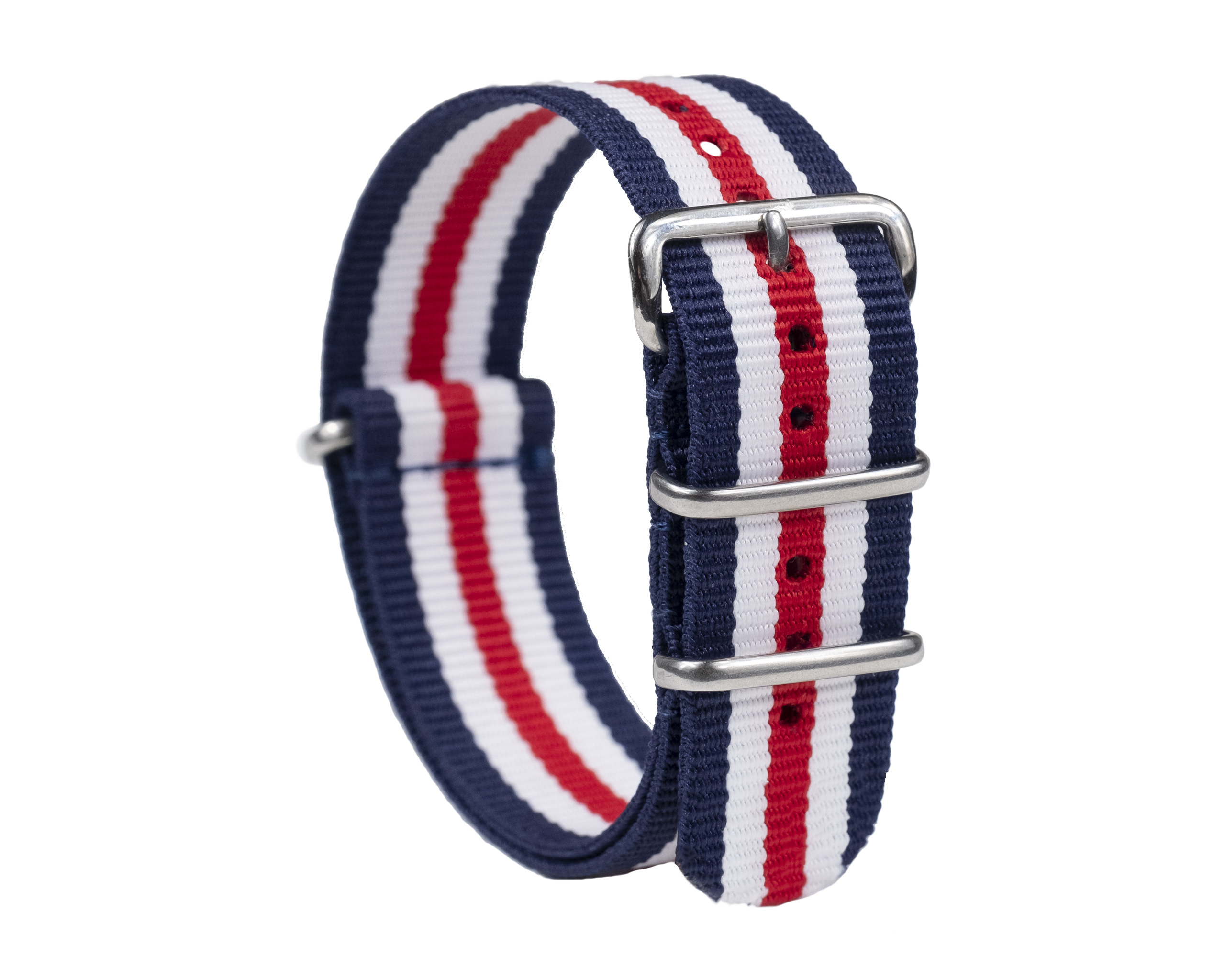 Das NATO-Band ist eines der zuverlässigsten Bänder – es fixiert die Uhr sicher und verhindert, dass sie verloren geht, selbst wenn einer der Bügel bricht. Das synthetische Armband ist beständig gegen Feuchtigkeit. Anstoßbreite verfügbar: 18 / 20 / 22 mm