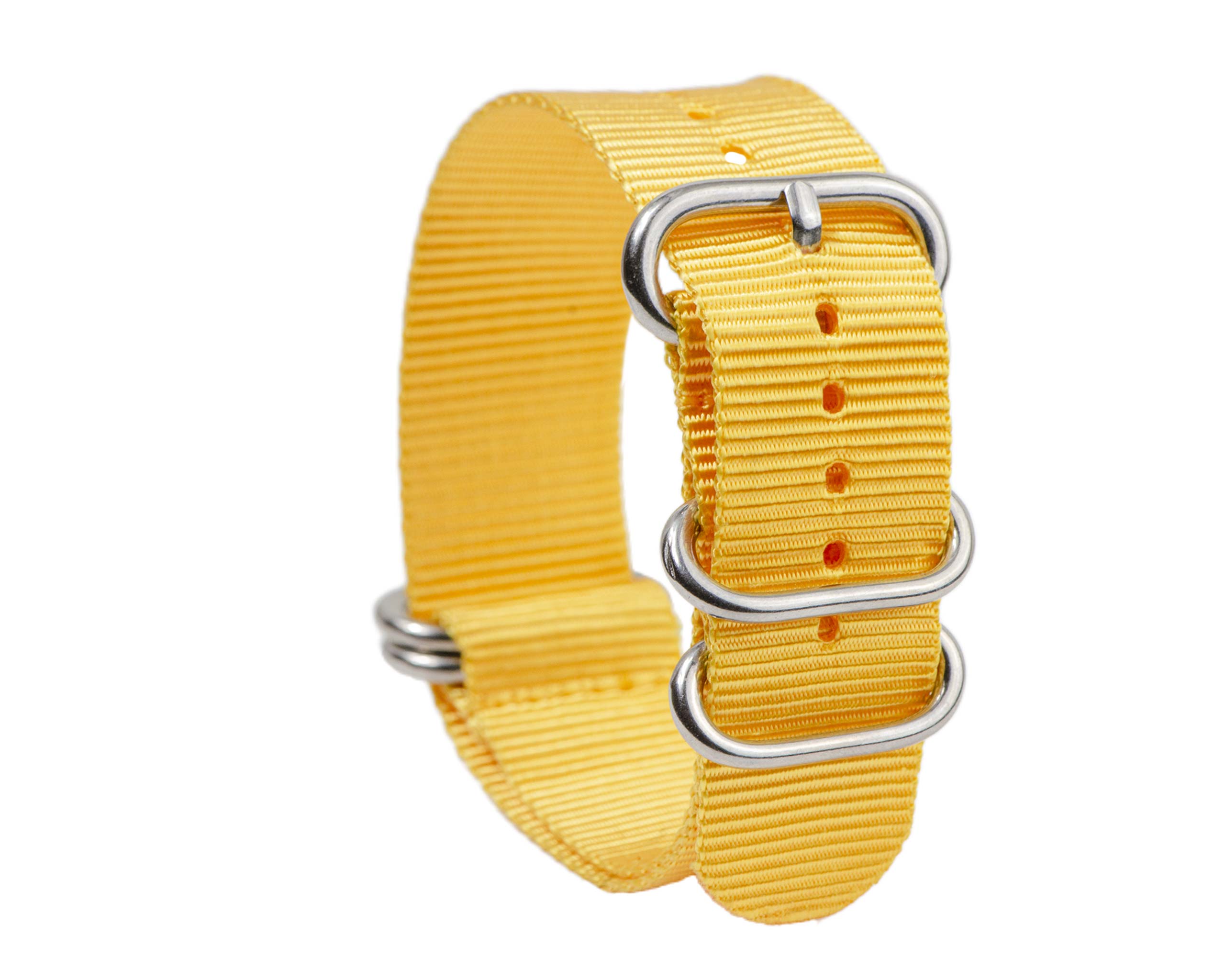 Das NATO-Band ist eines der zuverlässigsten Bänder – es fixiert die Uhr sicher und verhindert, dass sie verloren geht, selbst wenn einer der Bügel bricht. Das synthetische Armband ist beständig gegen Feuchtigkeit. Anstoßbreite verfügbar: 18 / 20 / 22 mm