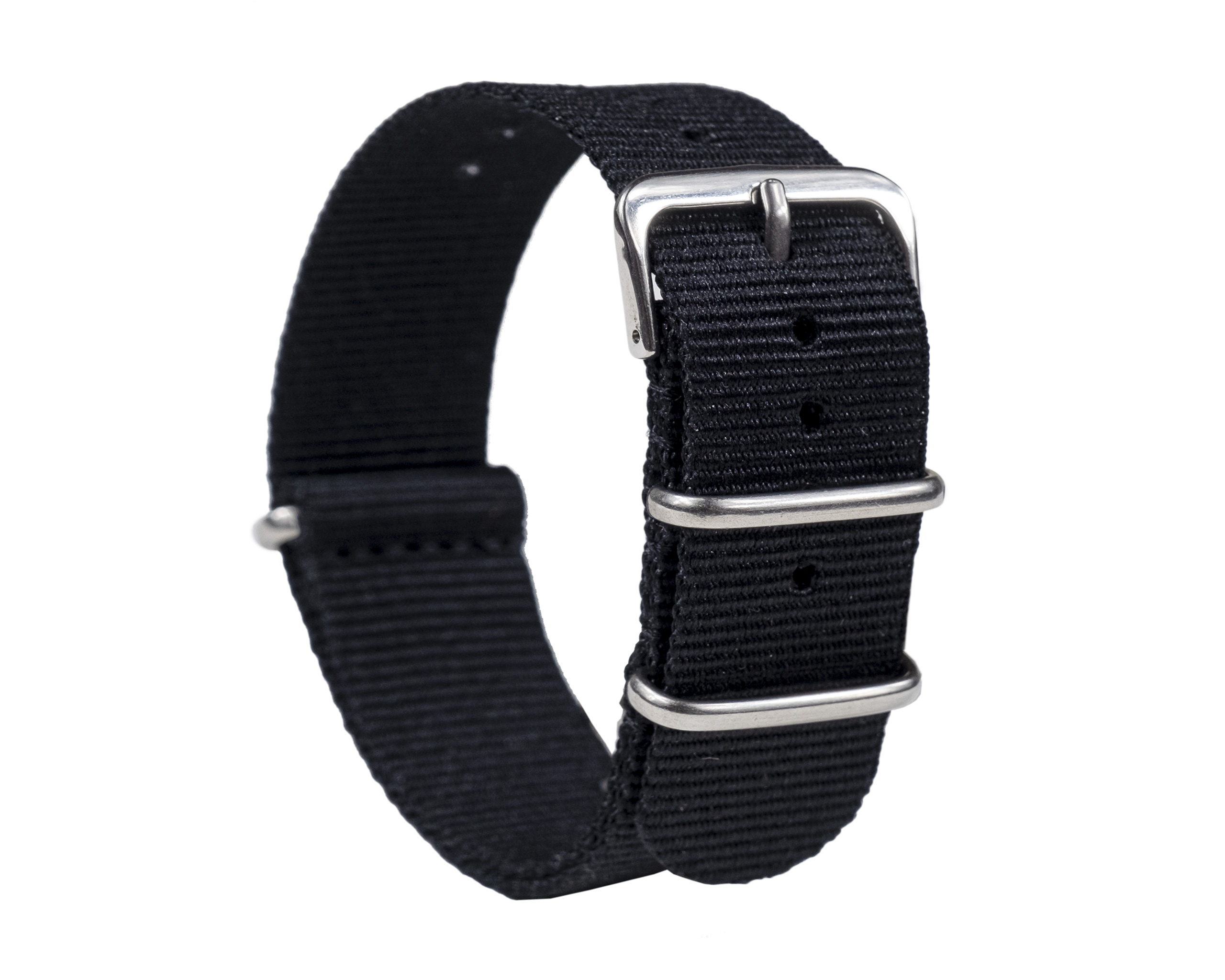 Das NATO-Band ist eines der zuverlässigsten Bänder – es fixiert die Uhr sicher und verhindert, dass sie verloren geht, selbst wenn einer der Bügel bricht. Das synthetische Armband ist beständig gegen Feuchtigkeit. Anstoßbreite verfügbar: 18 / 20 / 22 / 24 mm