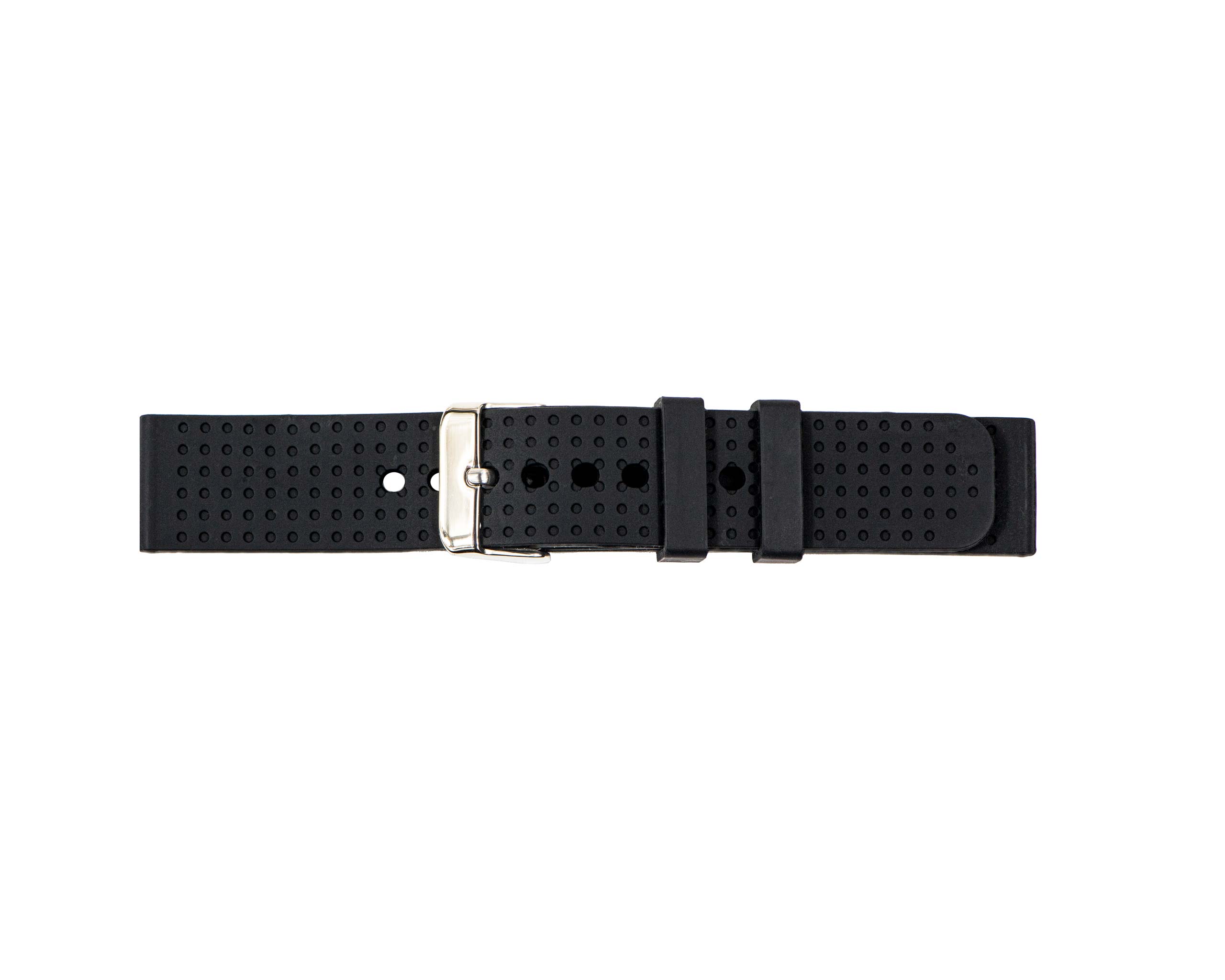 Das Band besteht aus Silikon. Es ist sehr flexibel und passt sich perfekt der Form des Handgelenks an. Der Verschluss ist aus Edelstahl gefertigt. Schweiß und Feuchtigkeit beeinträchtigt es nicht. Anstoßbreite verfügbar: 18 / 20 / 22 / 24 mm